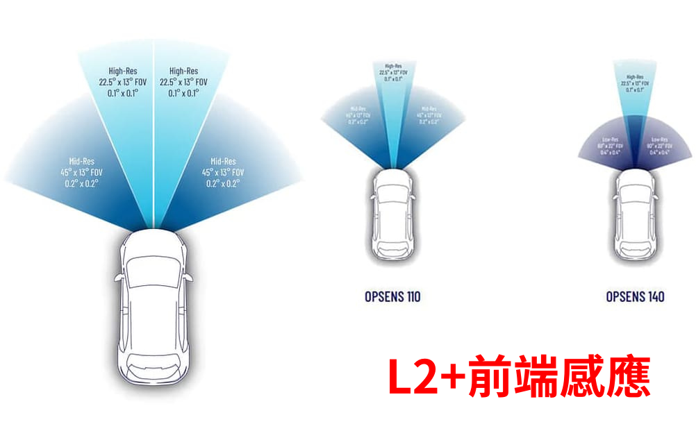 OPSENS雷射雷達透過純固態掃描架構(無運動部件)和半導體製程量產,提供高性價比的感知方案。在L2+級場景中,其200公尺偵測距離(反射率10%目標)及90%以上的偵測機率(POD)可精準辨識車道線、前車距離及突發障礙物,為自適應巡航(ACC)、車道維持(LKA)等提供冗餘保障。其緊湊設計(模組厚度<50mm)支援整合於車燈或前保險槓,適配量產車型需求。