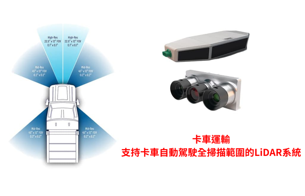 高刷新率(30Hz)和靈活視野角配置可適配卡車高速行駛需求,長距探測能力(200-300公尺)為卡車提供充足反應時間,優化煞車與變換車道策略,提升對障礙物的識別能力,降低貨運事故風險。