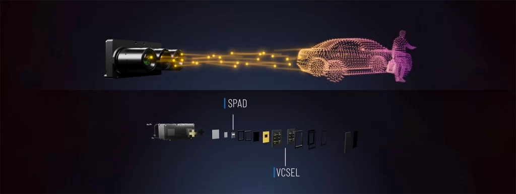 以300公尺超長探測能力與4D/5D點雲技術(含強度與環境資料)建構高精度三維環境模式(空間、強度、環境資訊),實現360°無死角感知,特別適用於複雜城市路況與極端天氣下的安全冗餘。