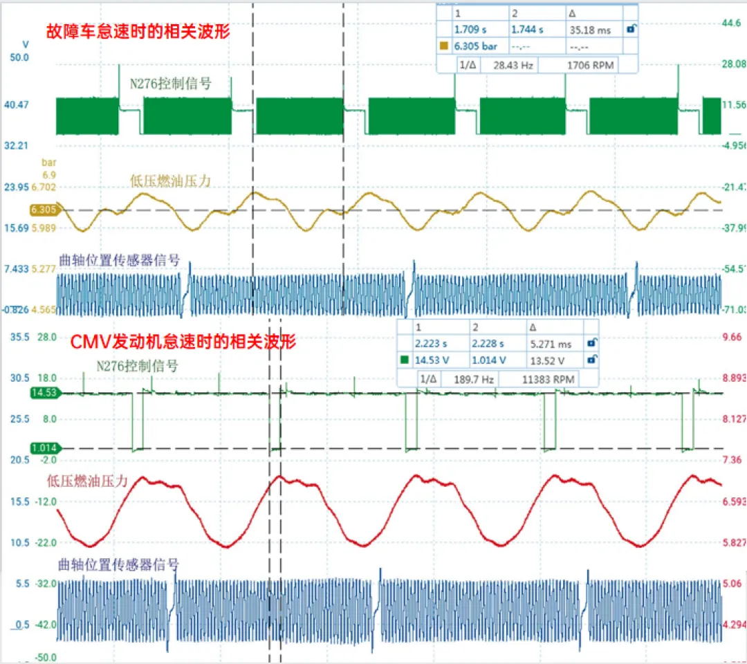 圖2 故障車與CMV引擎怠速時之相關波形對比