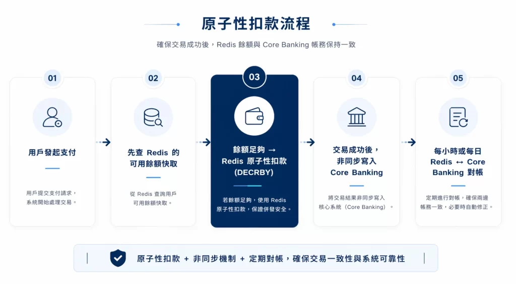 – 每日對帳時比對 Redis 與 Core Banking 的差異,自動調整