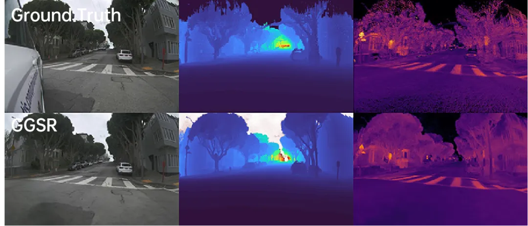 在場景細節層面,系統支援高斯殘差渲染器(GSR, Gaussian Splatting Renderer),可在 3D 重建場景中動態插入物件、優化環境光照與天氣條件,並有效降低陰影失真,修正鏡頭視角下可能產生的非一致性問題,提升感測資料的整體可信度。