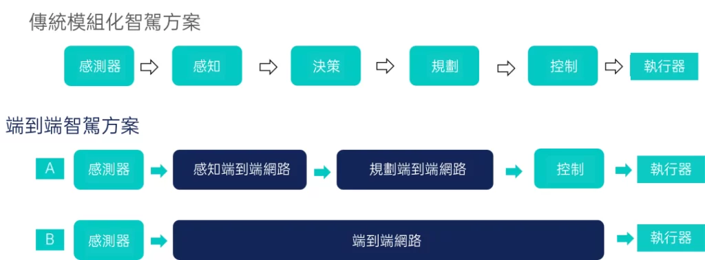 端到端架構的優勢在於其整體性與彈性。透過大量資料學習潛在規律,系統可具備更佳的泛化能力,以適應多樣且高度複雜的道路情境;同時,模型可直接將感測器輸入映射為車輛控制輸出,降低傳統模組分離架構中可能產生的資訊流失與誤差累積風險。再者,端到端系統具備持續學習與迭代能力,能隨著資料累積與訓練更新,動態因應法規變化與新型場景需求。