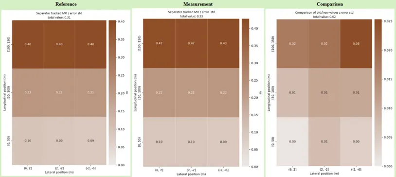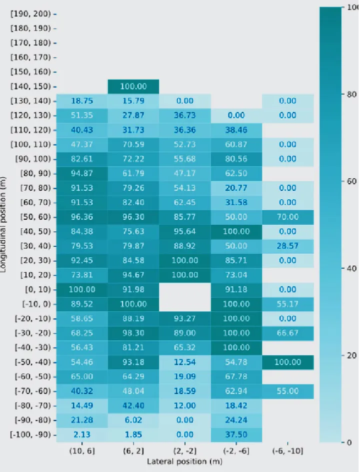 我們針對本解決方案的仿真結果進行了完整且系統化的驗證。以車道線偵測任務為例,aiSim 仿真結果與真實世界資料之間的召回率高度一致,最高可達 98.45%。多項目標偵測任務的測試結果亦顯示,仿真輸出與實際路測表現具有高度相符性,特別是在遠距離目標偵測場景中,召回率表現尤為突出。