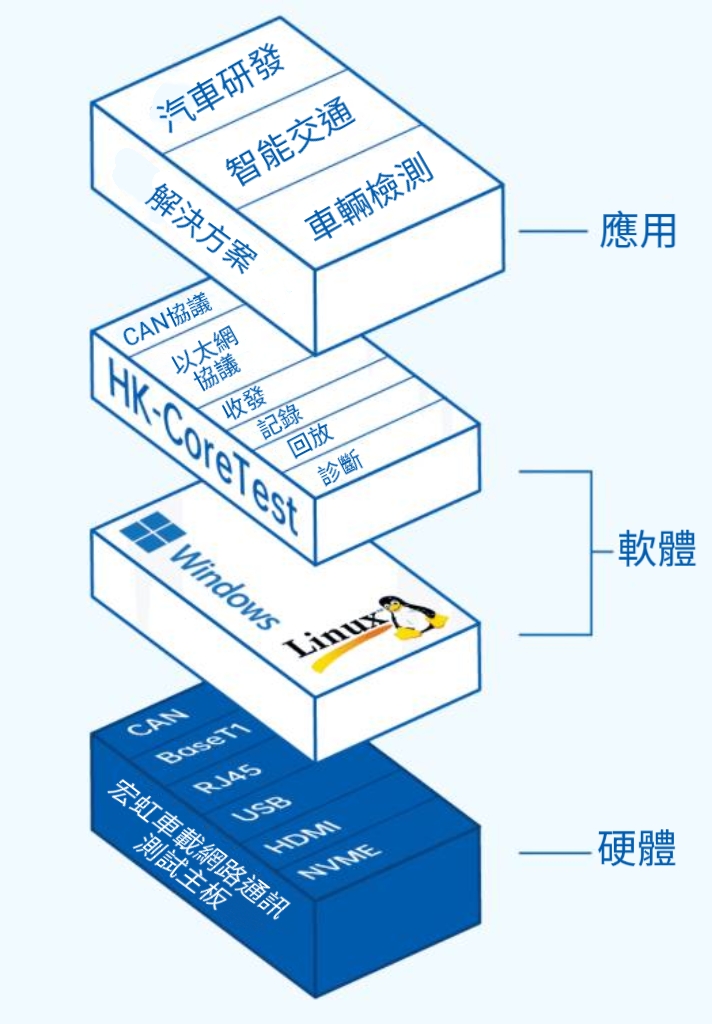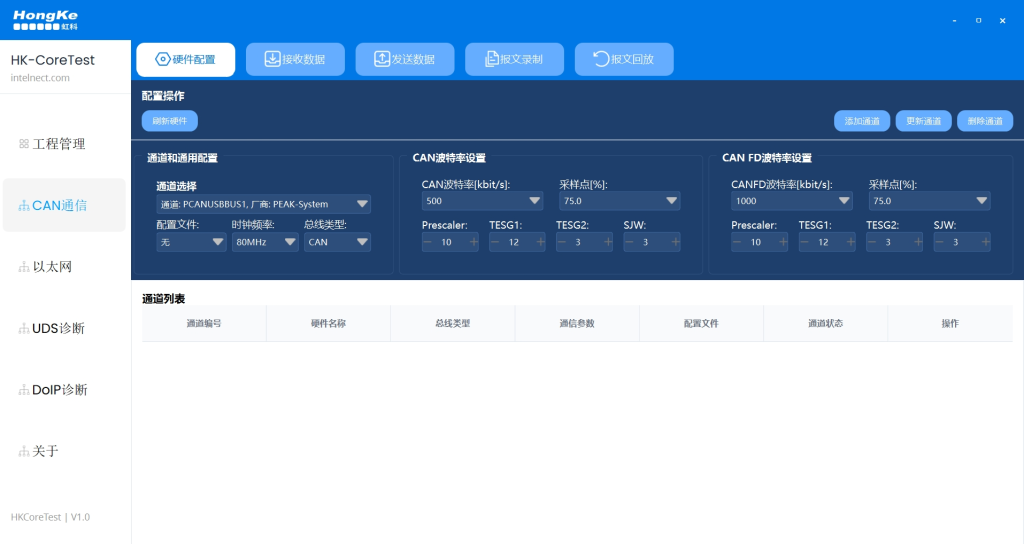 HK-CoreTest 是一款汽車電子模擬與測試的綜合工具,可連接、配置並控制所有的宏虹硬體(包括:車載網路通訊測試主機板、PCAN-USB / PCIe 等系列、車載乙太網路工具),實現汽車匯流排監控、模擬與診斷功能。