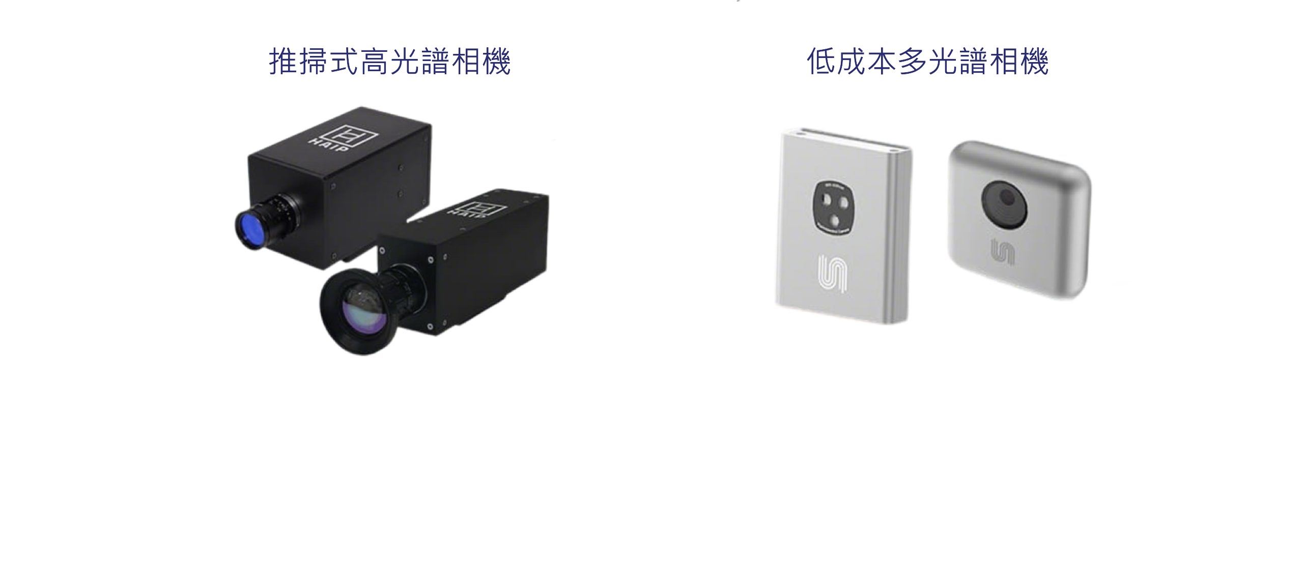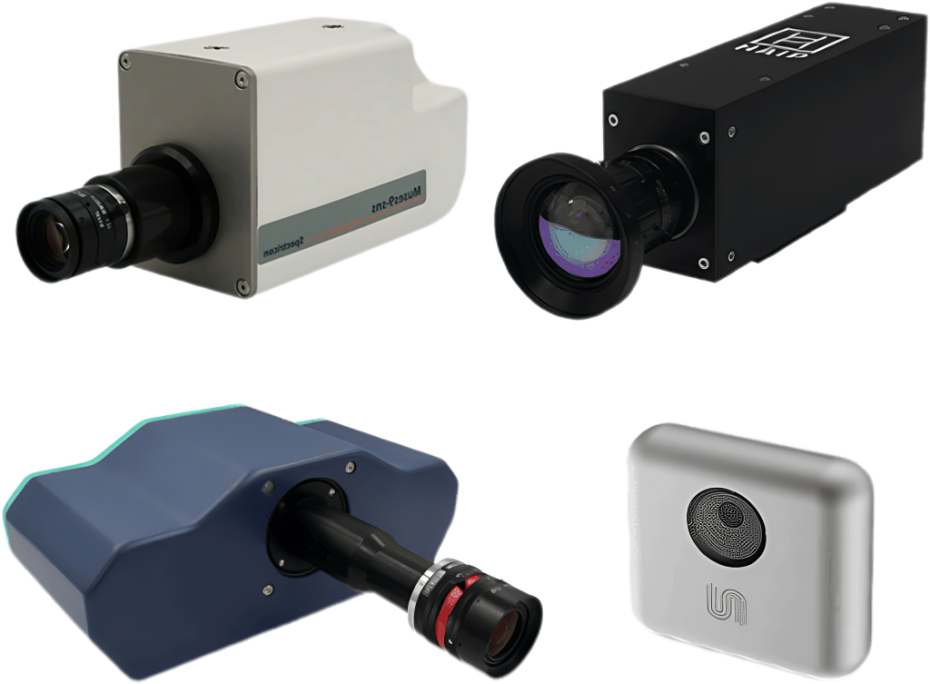 多種特色光譜相機:最大6.4MP成像解析度、>50Hz面陣成像幀頻、>1000Hz線陣幀頻、手持便攜式、低成本。