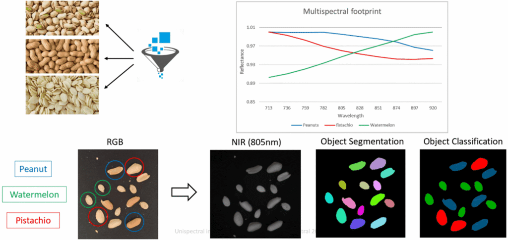 為了減少垃圾污染,需要對塑膠進行分類回收,例如塑膠瓶:瓶子由PET(聚乙烯對苯二甲酸酯)製成,蓋子則由 PE(聚乙烯)製成,其中PET 是唯一能夠維持真正循環供應鏈的聚合物之一。在回收過程中,塑膠被切碎成薄片,然後進行分類,成功回收塑膠的強制性要求是輸入材料必須盡可能純淨。然而,從外觀和色彩來說,PE和PET都可能是白色,形態上也沒有太大差別,利用常規可見光相機很難區別兩者。