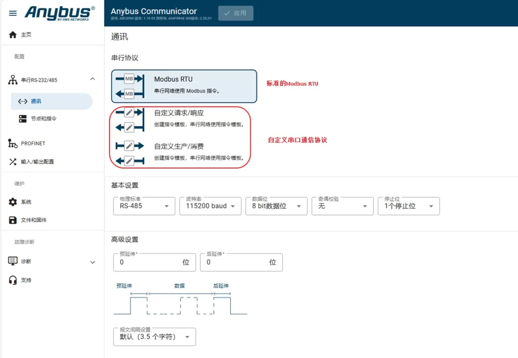 支援 Modbus RTU 主站,以及串口自訂通訊協定設定